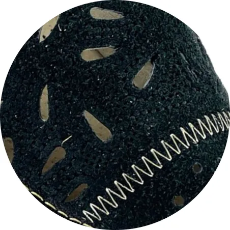 Eleganckie tłoczenie w kształcie łezki z ozdobnikami oraz precyzyjne przyszycia typu zyg-zak nadają pantofelkom wyjątkowego, oryginalnego charakteru. To prawdziwa perełka w Twojej domowej garderobie!
