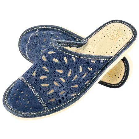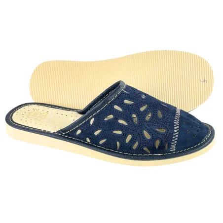 Granatowe laczki domowe damskie, pantofle damskie do domu, wygodne papcie damskie - numer 424