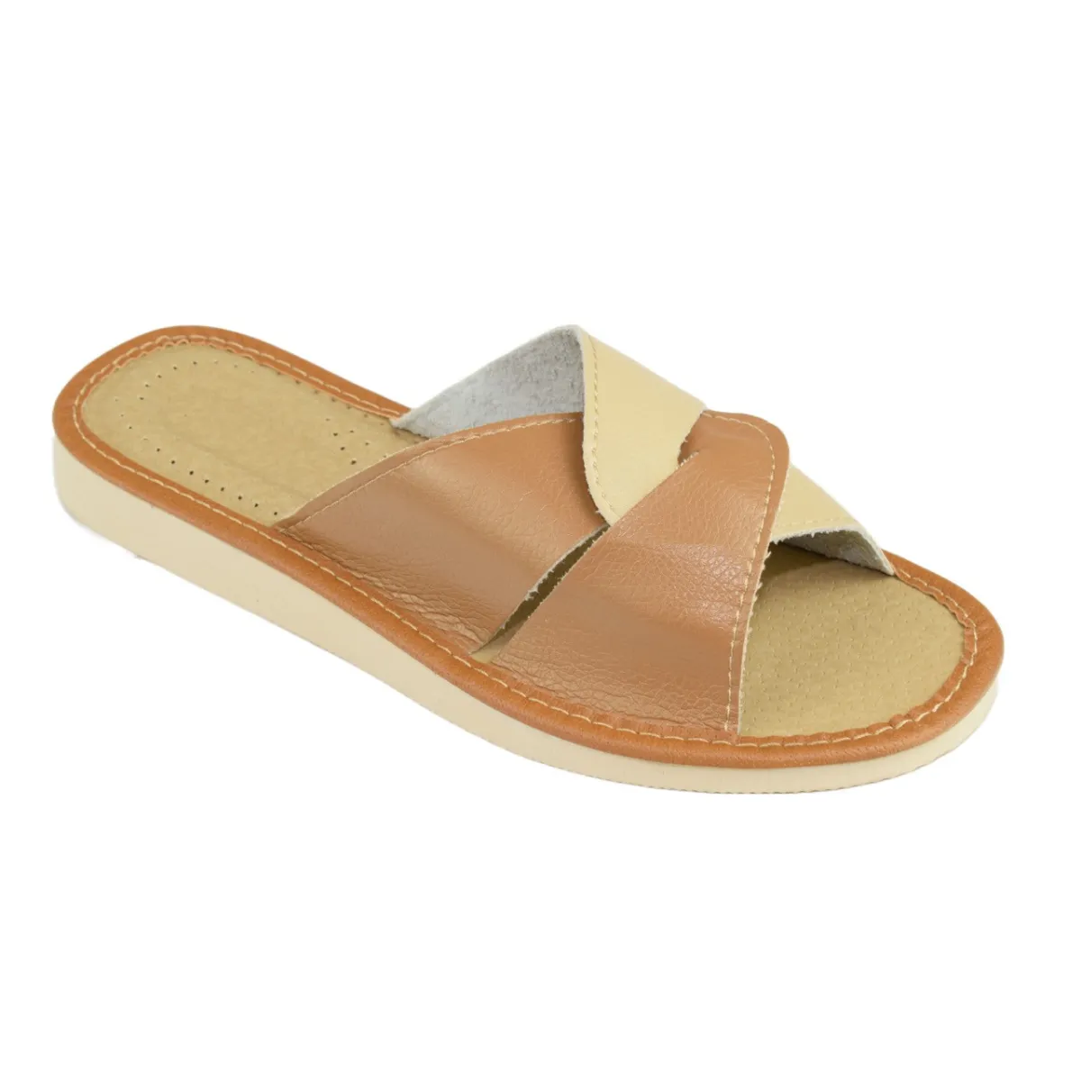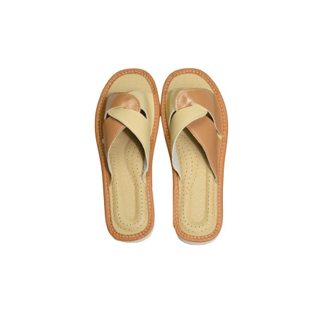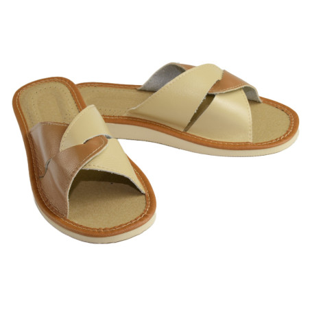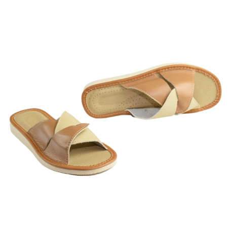 Odkryte kapcie damskie, pantofle damskie cappuccino/beż - numer 040