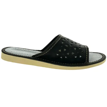 Najwyższy priorytet to zdrowie i wygoda Twoich stóp. Dlatego wnętrze pantofli wykończyliśmy miękką, naturalną skórą. Ten materiał jest przyjazny dla skóry, zapewnia doskonałą cyrkulację powietrza i zapobiega poceniu się stóp. Skórzana wkładka idealnie dopasowuje się do kształtu stopy, zapewniając optymalne wsparcie i komfort nawet podczas długotrwałego chodzenia.