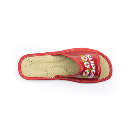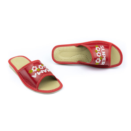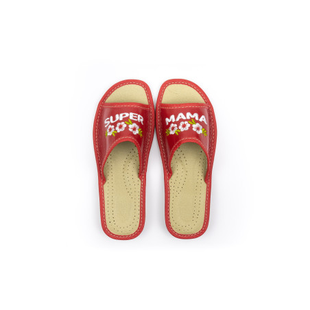 Czerwone pantofle damskie z napisem "Super Mama" - numer 086