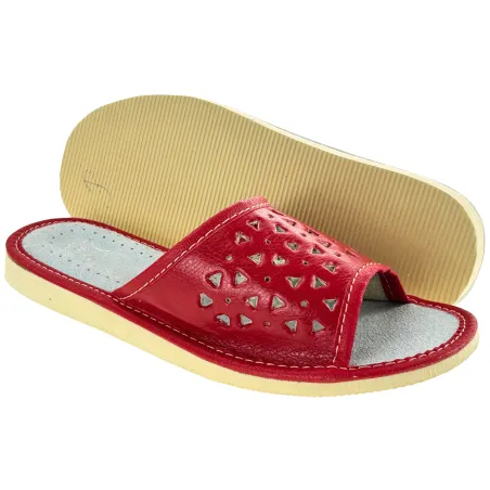 Czerwone skórzane kapcie, pantofle domowe damskie, kolorowe kapcie domowe - numer 293
