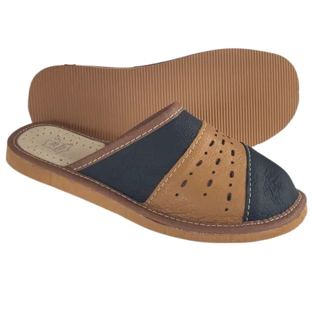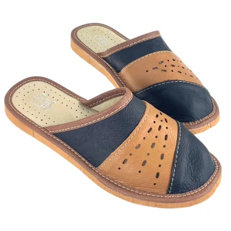 Kryte Damskie Skórzane Pantofle Domowe, brązowe pantofle laczki damskie - numer 380