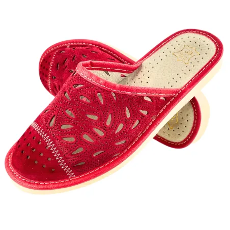 Czerwone laczki damskie skórkowe, pantofle damskie domowe dla Pań - numer 422