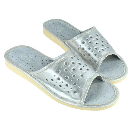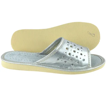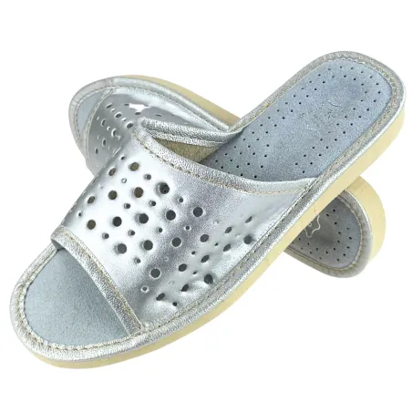 Srebrne pantofle domowe damskie, wygodne kapcie domowe damskie - numer 429