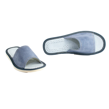 Skórkowe, welurowe pantofle domowe, laczki skórzane damskie - numer 057