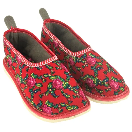 Czerwone góralskie kapcie domowe z piętką - numer 480