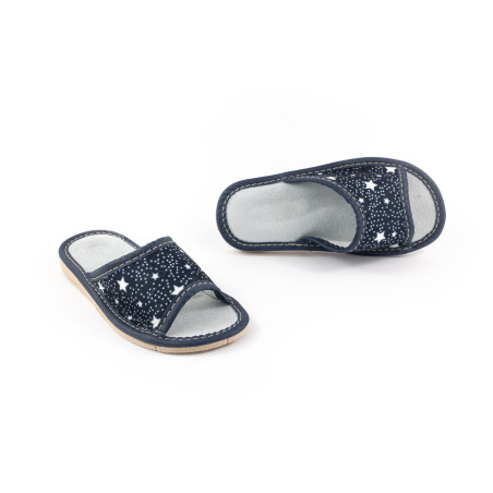 Kapcie dziecięce w gwiazdki granatowe, pantofle domowe dziecięce - numer 084