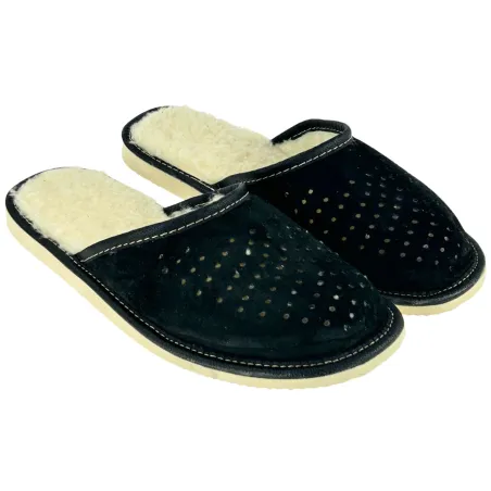 • Najwyższa Jakość Materiałów: Cholewka kapci została wykonana w sposób gwarantujący optymalny komfort. Warstwa bezpośrednio stykająca się ze stopą to miękka i delikatna naturalna wełna, która zapewnia niesamowite doznania dotykowe. Z nią zespolona jest wierzchnia, ozdobna część wykonana ze szlachetnej skóry zamszowej, nadająca kapciom elegancki i stylowy wygląd oraz zwiększająca ich trwałość.