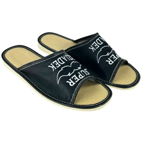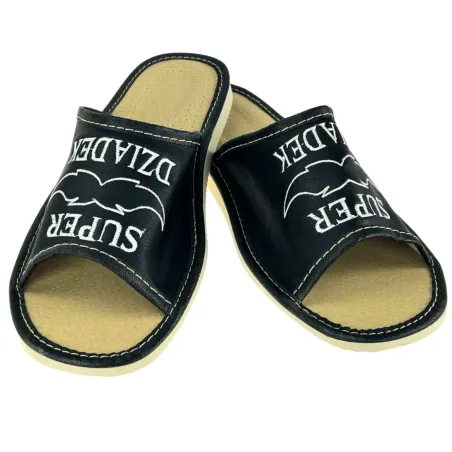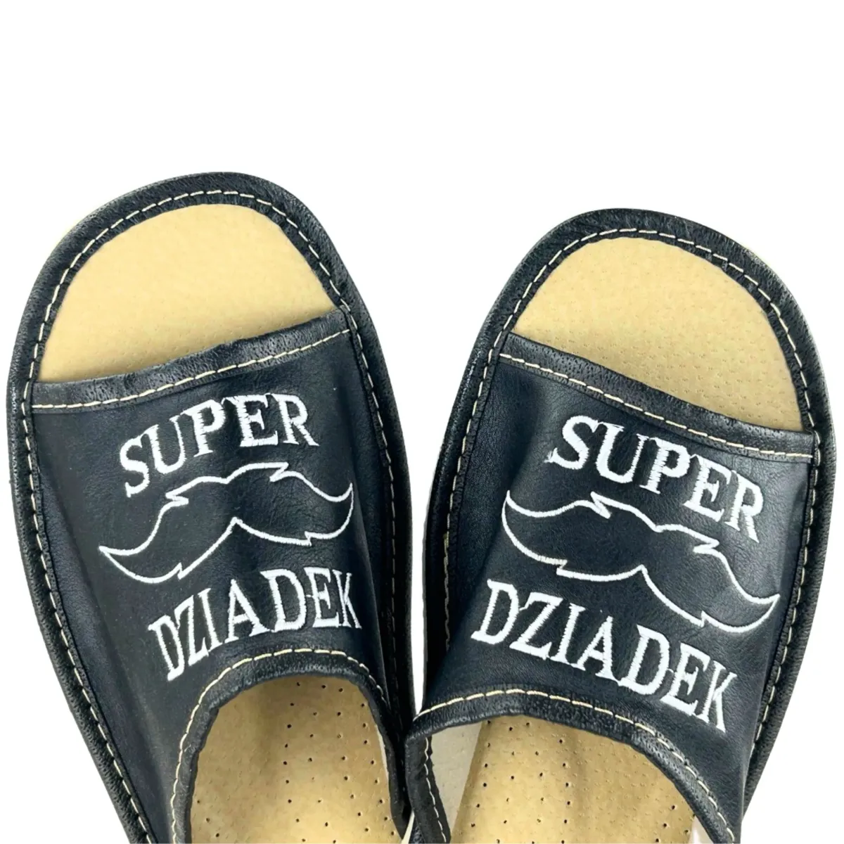 Kapcie dla Dziadka Czarne pantofle domowe z napisem super dziadek - numer 503