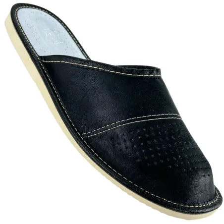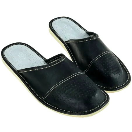Skórkowe czarne, kryte pantofle męskie, wygodne lacie męskie - numer 194