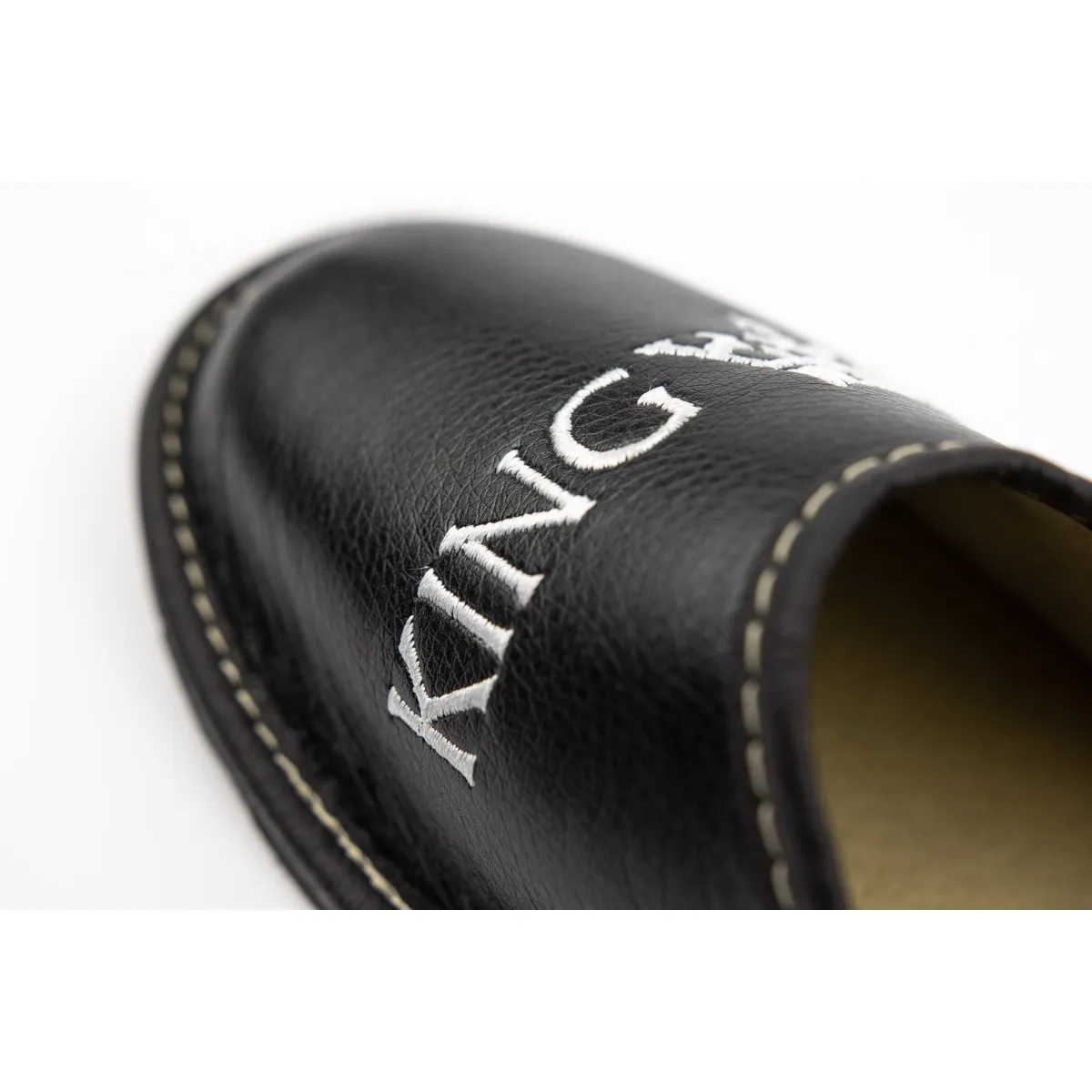 Gdy przekraczasz próg swojego królestwa i zrzucasz z siebie trudy dnia... Gdy zasługujesz na przyjęcie godne prawdziwego władcy... Oto kryte pantofle domowe z napisem "King" – obuwie, które ogłasza Twoją wyjątkowość w każdym domowym kroku.