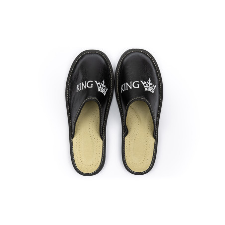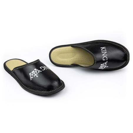 Pantofle męskie czarne z napisem "King" laczki domowe meskie - numer 103