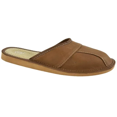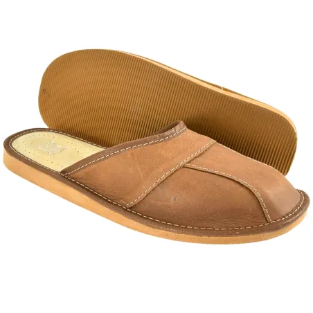 Skórzane pantofle męskie wytrzymałe kapcie góralskie jasny brąz – Gwarancja Komfortu i Trwałości