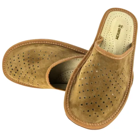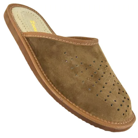 Wygodne Laczki męskie skórzane Pantofle domowe ze skóry - numer 473